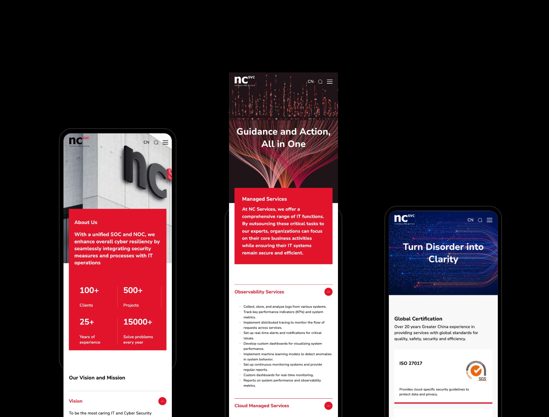 NC Services 始终秉承“专业、创新、品质、服务”的理念,致力于通过前沿技术与工具提供全面的IT解决方案与专业服务,引领网络安全与IT运营领域的发展。我们以客户核心业务为中心,助其实现业务目标,同时在商业全链路中交付卓越的IT效益。