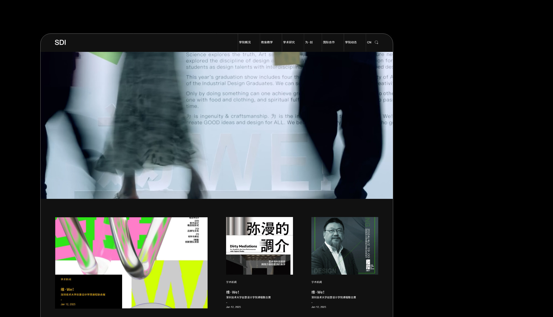 深圳技术大学创意设计学院秉持服务国家战略、满足社会需求,扎根粤港澳大湾区核心引擎城市,立足深圳“设计之都”的产业优势。以“应用为本、创新驱动、开放融合、智能引领”为办学理念,构建了紧密对接深圳20+8战略性新兴产业与未来产业需求的设计人才培养体系。